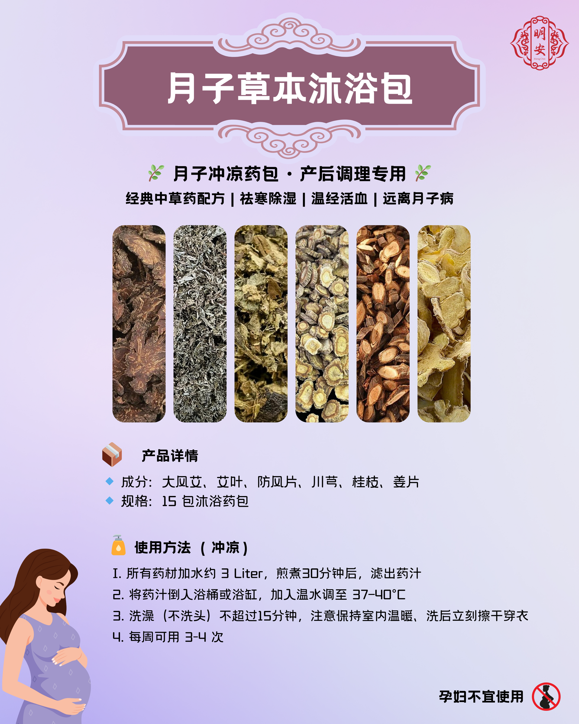 • External Detoxification – Dispels cold and dampness, improves circulation and joint discomfort, helps prevent “postpartum syndromes”